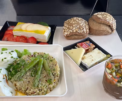 Les plateaux repas sont élaborés à partir de produits frais et de saison.